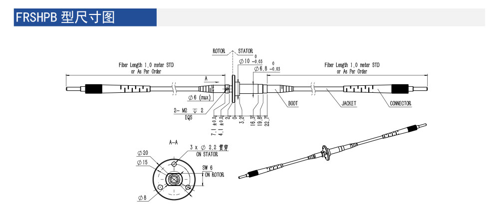 FRSHPB特殊光纖型光纖滑環可采用25/400、105/125、200/220、800/1000等大芯徑光纖或其他客戶指定的光纖。采用上述類型光纖制作的光纖滑環可用于傳輸功率較高的場景。